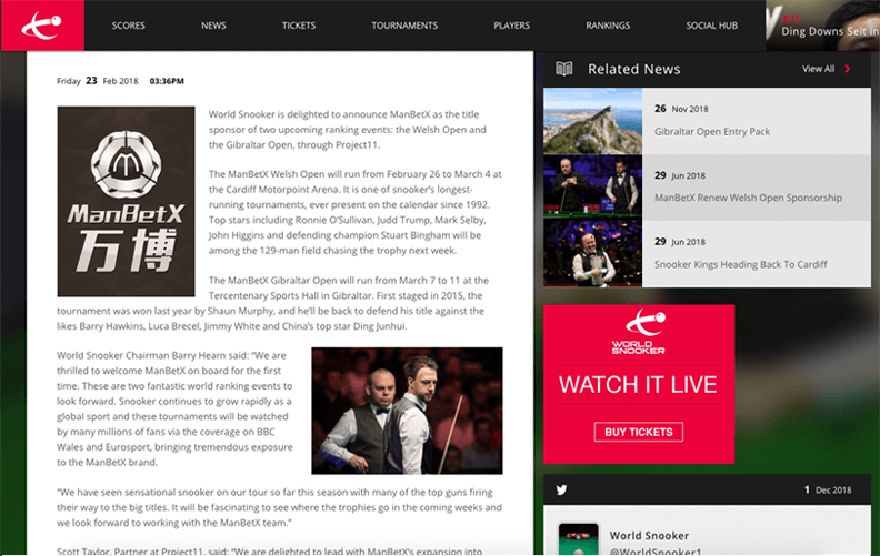 成立于1992年,威尔士公开赛是一个历史悠久的斯诺克排名赛,是最多球迷们喜爱的赛事之一。2018年威尔士公开赛是由D11WB荣耀赞助,世界著名斯诺克选手如奥沙利文、塞尔比、霍金斯、希金斯、威廉姆斯等都是该赛事的参赛者。约翰•希金斯在D11WB威尔士公开赛夺冠,创下了首位5次捧起该项赛事的选手。查看更多>> 斯诺克威尔斯公开赛以及直布罗陀公开赛宣布。 查看更多>>